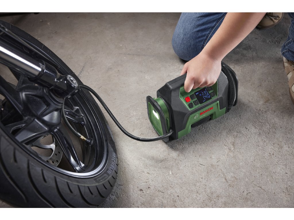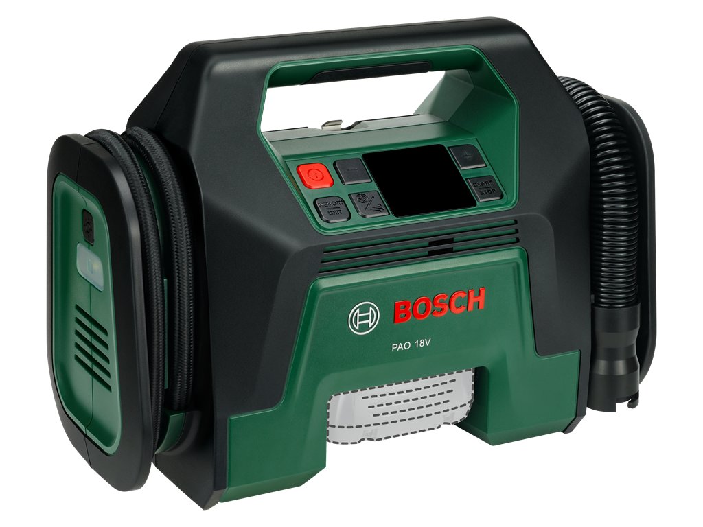 PAO 18V je všestranný akumulátorový vzduchový kompresor s dvojí funkcí, který je ideální pro kutily. Jeho vysokotlaká schopnost (až 10,3 baru) snadno zvládá náročné úkoly. Odolný a efektivní, je ideální pro huštění všech druhů pneumatik. Chytré funkce, jako jsou předvolitelné hodnoty tlaku, vám dávají kontrolu a pomocí paměťové funkce můžete uložit až 3 často používaná nastavení. Rychlého nahuštění/vypuštění je dosaženo průtokem vzduchu 400 l/min a dlouhou hadicí. Digitální LED displej vám poskytne okamžitý přehled o všech důležitých informacích. Integrovaný úložný prostor pro vysokotlaké adaptéry navíc udržuje vše uspořádané a snadno přístupné. Je kompatibilní s akumulátorem 18V POWER FOR ALL.