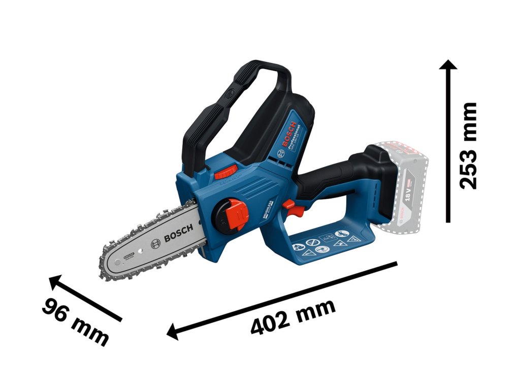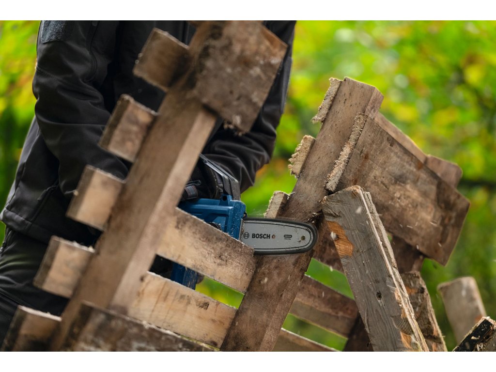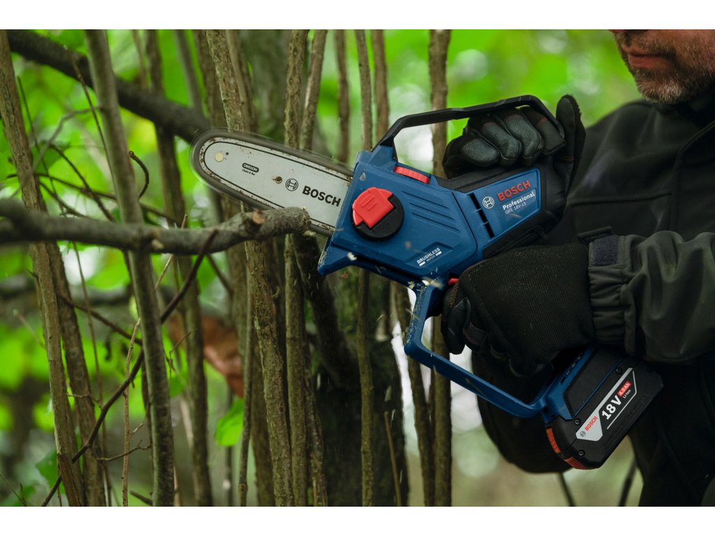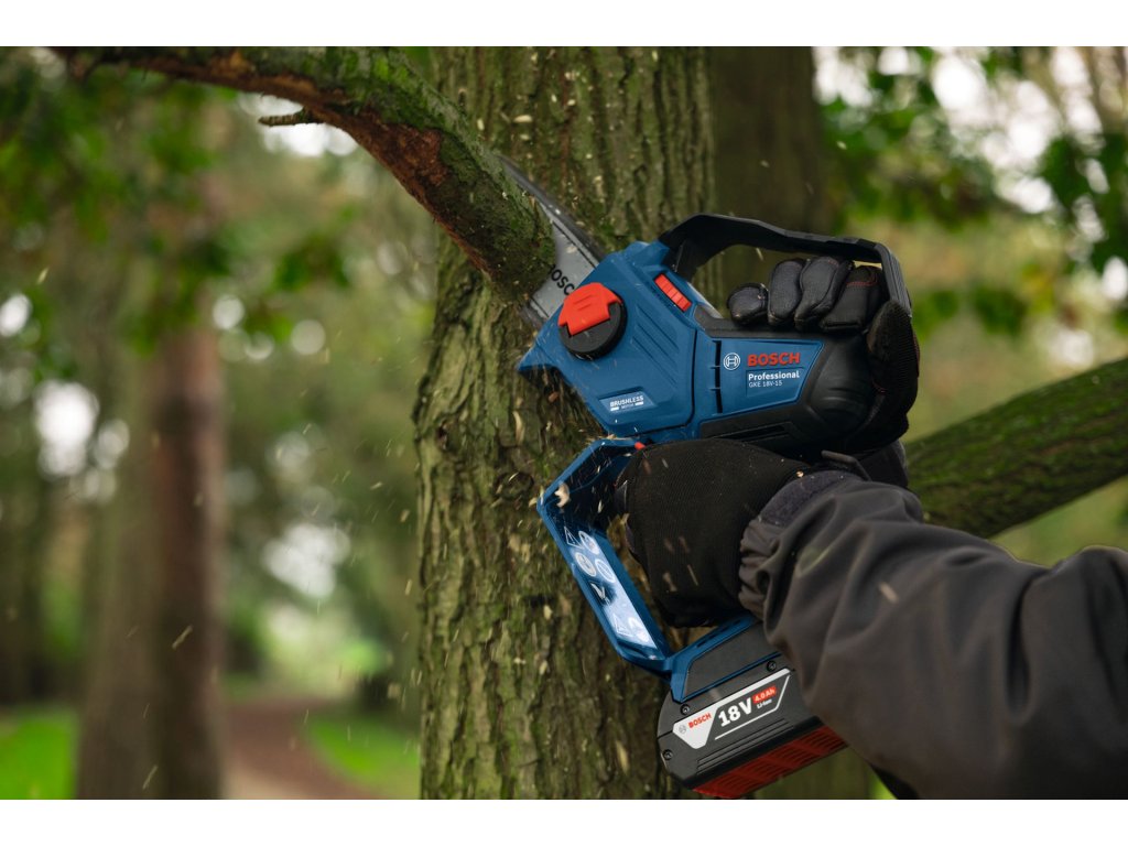 Řetězové pily mohou být velké a nepraktické, zvláště při práci ve stísněných prostorech. Prořezávací pila Bosch GKE 18V-15 Professional je lehká a kompaktní, ideální pro řešení úkolů v těžko přístupných oblastech. Její bezuhlíkový motor poskytuje vysoký výkon a zajišťuje dlouhou životnost. Funkce automatického mazání udržuje řetěz promazaný a zvyšuje tak výkonnost. Tato prořezávací pila je také navržena s ohledem na vylepšenou kontrolu: má gyroskopický senzor, který monitoruje pohyb a zabrzdí řetěz, pokud je detekován potenciální zpětný ráz.