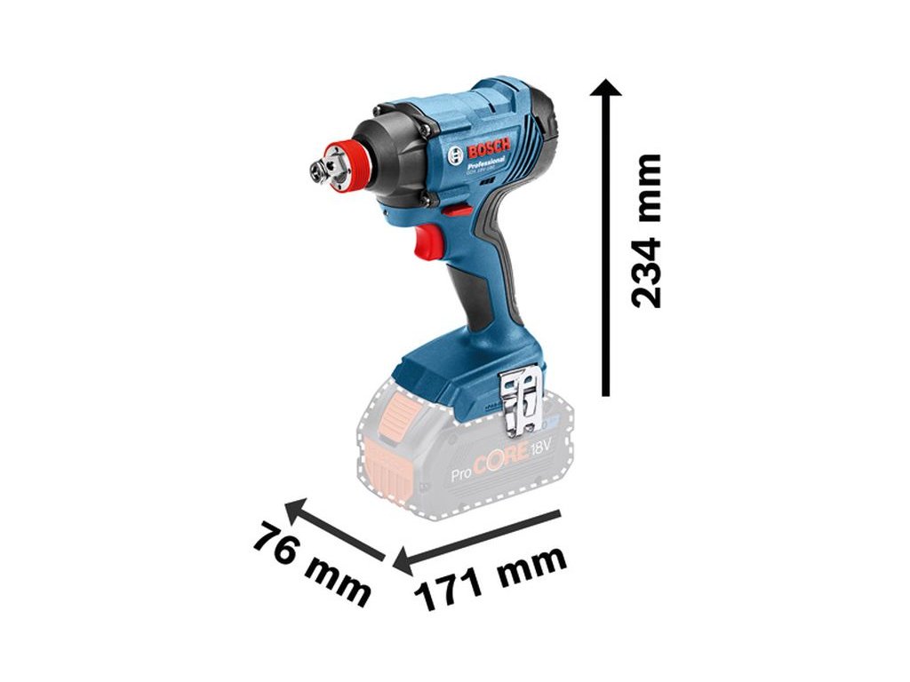 Akumulátorový rázový utahovák Bosch GDX 18V-200 C. Připraveno na každou práci, díky vestavěnému držáku nástrojů 2 v 1: upínání přes ¼" vnitřní šestihran...