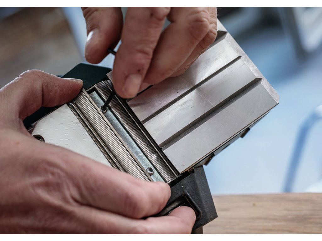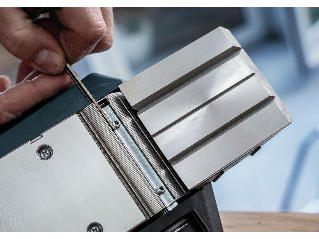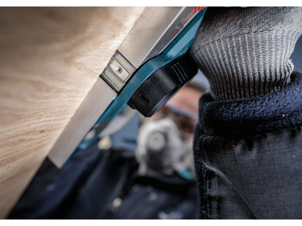 Pohodlná práce díky výkonnému710 W motoru, oboustrannému vyhazování třísek a nastavení hloubky úběru až 2,6 mm. V-drážka pro snadné a flexibilní hoblování hran.