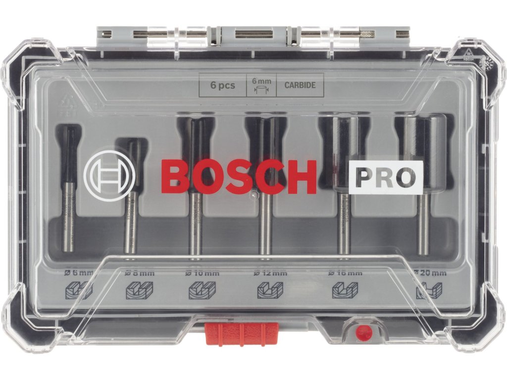 Bosch 6 dílná sada fréz s 6 mm stopkou Trim & Edging. Sada fréz umožňuje jemné řezání v mnoha různých aplikacích pro práci s dřevem.