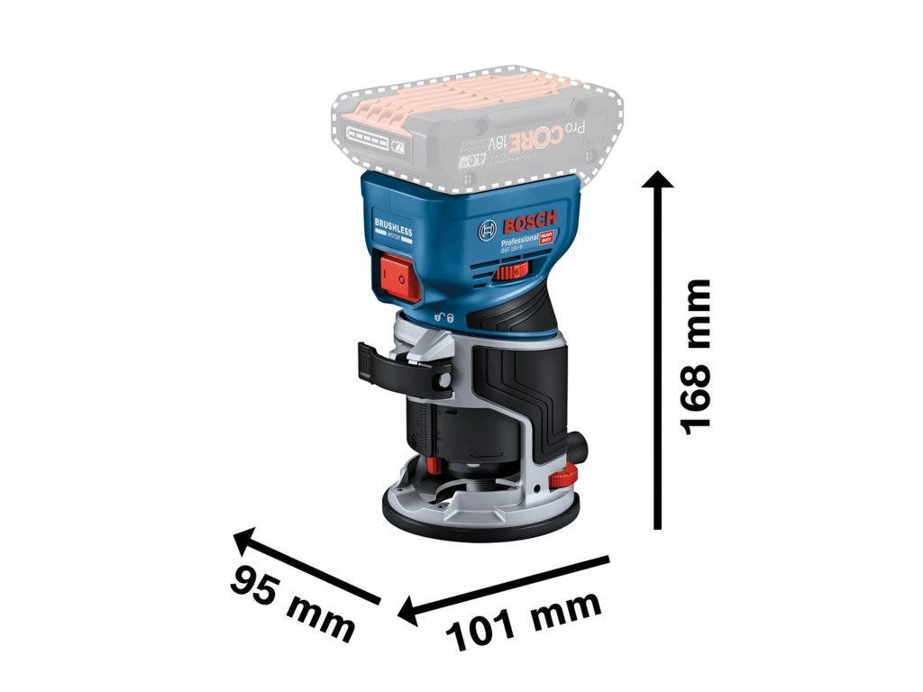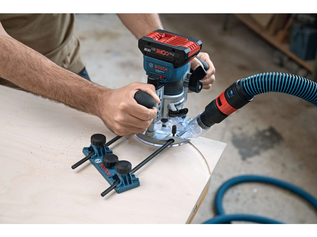 Vlajková loď mezi 18V ohraňovacími frézkami: Maximální výkon a kompatibilita s příslušenstvím se špičkovými funkcemi pro bezkonkurenční všestrannost. Kombinuje výhody špičkových funkcí, výkonného bezuhlíkového motoru a kompatibility s širokou škálou příslušenství, které uspokojí všechny požadavky ohraňovacího frézování, od lehkého profilování hran až po náročnější frézování ploch. Tato 18V ohraňovací frézka má nejkompaktnější výšku na trhu, která minimalizuje hmotnost horní části a maximalizuje kontrolu nad nářadím, hands-free zámek vřetena pro bezproblémovou výměnu bitů a jemné nastavení hloubky řezu, které vám poskytuje vynikající zážitek z frézování. GKF 18V-8 je navíc jedinou 18V ohraňovací frézkou na světě s adaptéry na vysavač pro frézování ploch i hran, které zaručují vysoce efektivní odvod prachu ve všech situacích.
