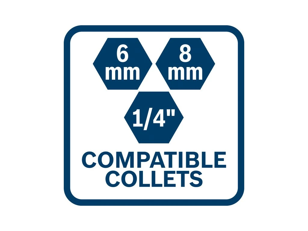Kompatibilní průměry upínacích kleštin: 6 mm / 8 mm / 1/4''