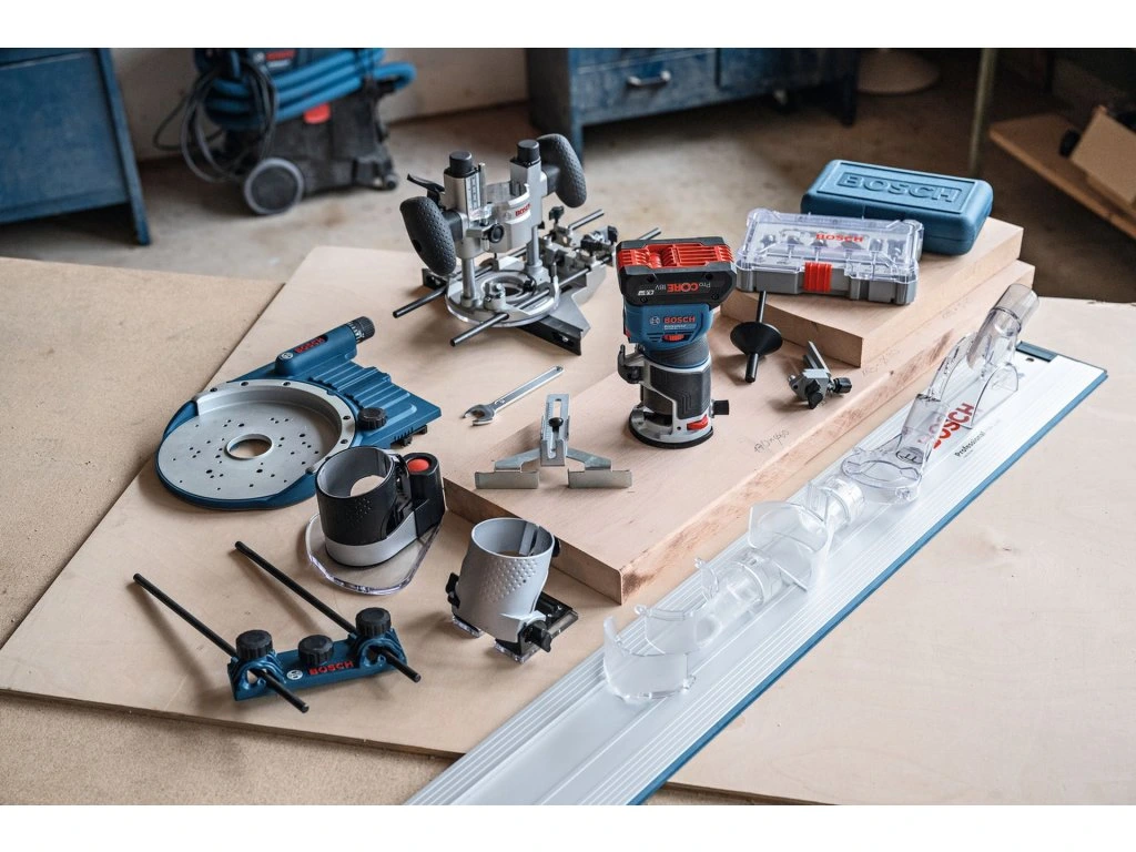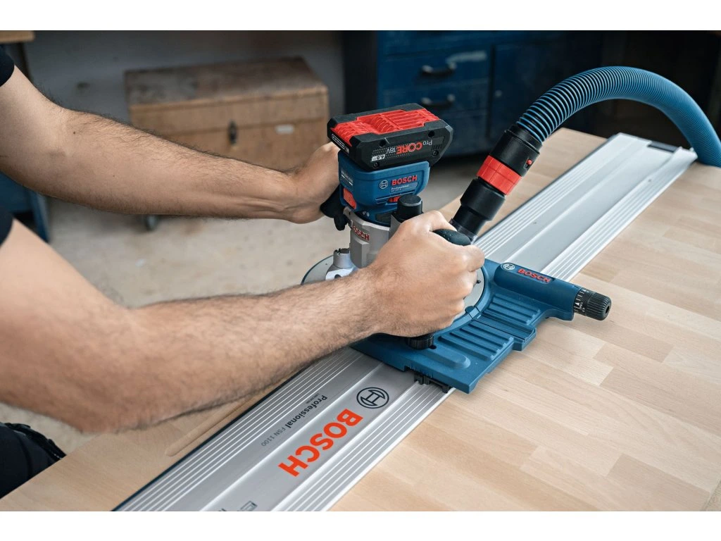Vlajková loď mezi 18V ohraňovacími frézkami: Maximální výkon a kompatibilita s příslušenstvím se špičkovými funkcemi pro bezkonkurenční všestrannost. Kombinuje výhody špičkových funkcí, výkonného bezuhlíkového motoru a kompatibility s širokou škálou příslušenství, které uspokojí všechny požadavky ohraňovacího frézování, od lehkého profilování hran až po náročnější frézování ploch. Tato 18V ohraňovací frézka má nejkompaktnější výšku na trhu, která minimalizuje hmotnost horní části a maximalizuje kontrolu nad nářadím, hands-free zámek vřetena pro bezproblémovou výměnu bitů a jemné nastavení hloubky řezu, které vám poskytuje vynikající zážitek z frézování. GKF 18V-8 je navíc jedinou 18V ohraňovací frézkou na světě s adaptéry na vysavač pro frézování ploch i hran, které zaručují vysoce efektivní odvod prachu ve všech situacích.