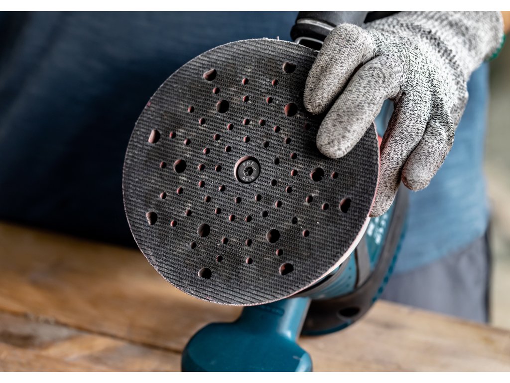 Zdánlivě náhodné rozmístění otvorů je výsledkem pečlivého výzkumu: otvory pasují ke všem rozvržením brusného papíru, takže zajišťují co nejdelší možnou životnost.