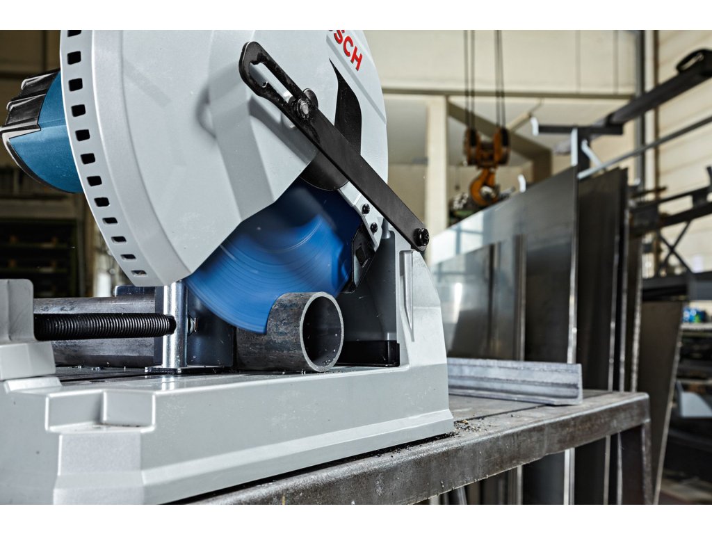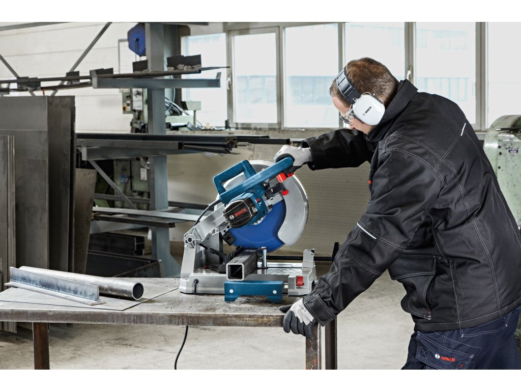 Pokosová pila se zákluzem Bosch GCM 350-254 Professional. Vysoká řezná kapacita a variabilní otáčky pro nejrůznější druhy použití.