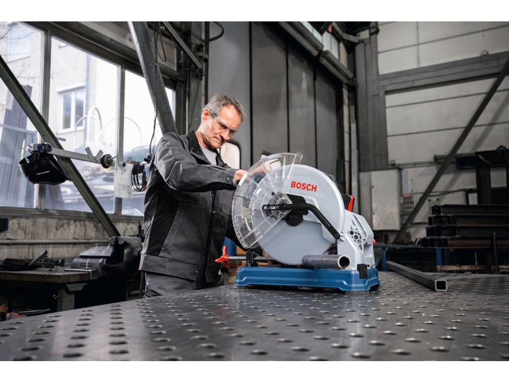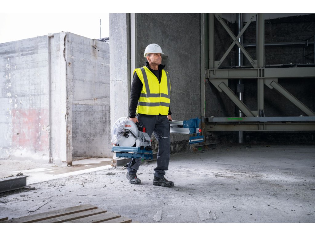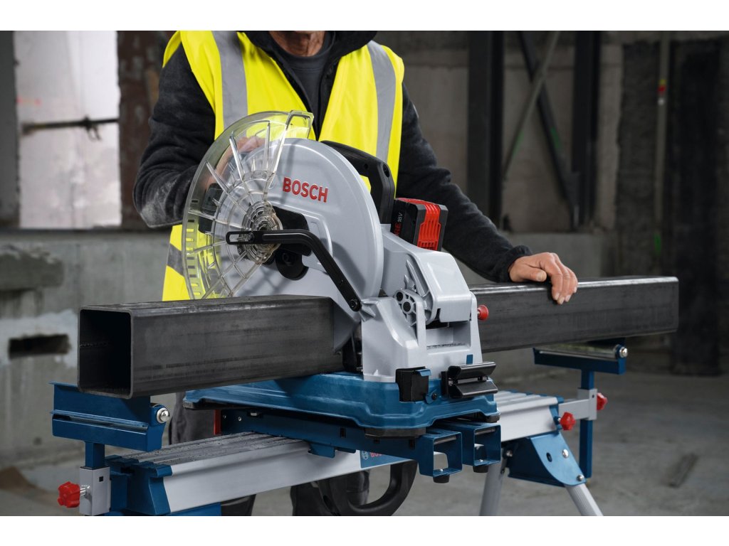 Pokosová pila se zákluzem Bosch GCM 350-254 Professional. Vysoká řezná kapacita a variabilní otáčky pro nejrůznější druhy použití.
