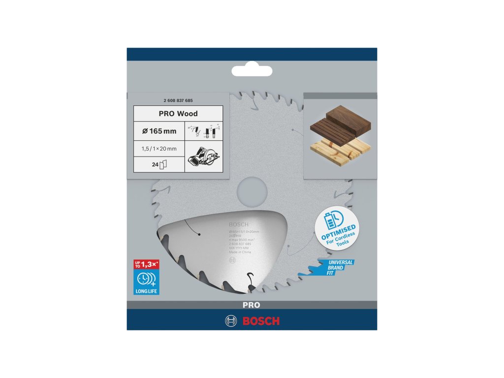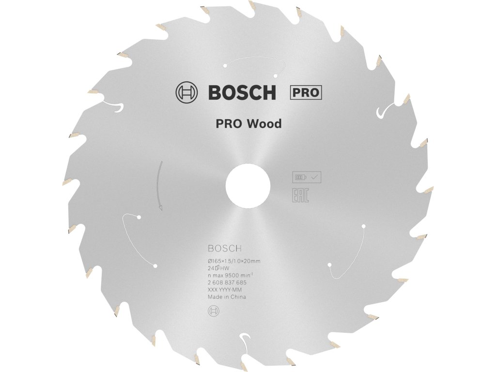 Pilový kotouč PRO Wood cordless pro akumulátorovou okružní pilu, 165 × 1,5 × 20 mm, 24 zubů