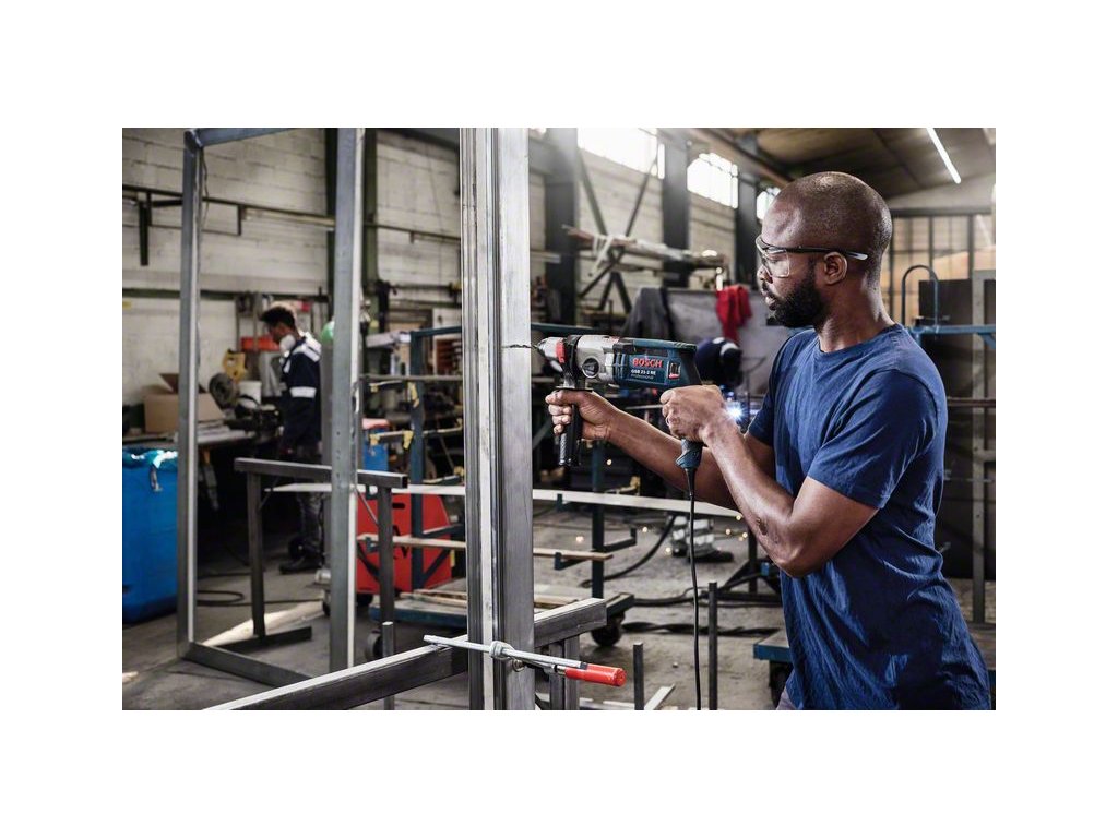 Vysoce výkonná dvoustupňová příklepová vrtačka (800 W) pro nejrychlejší postup práce. Robustní kovový kryt převodovky pro dlouhou životnost. Mechanická bezpečnostní spojka...