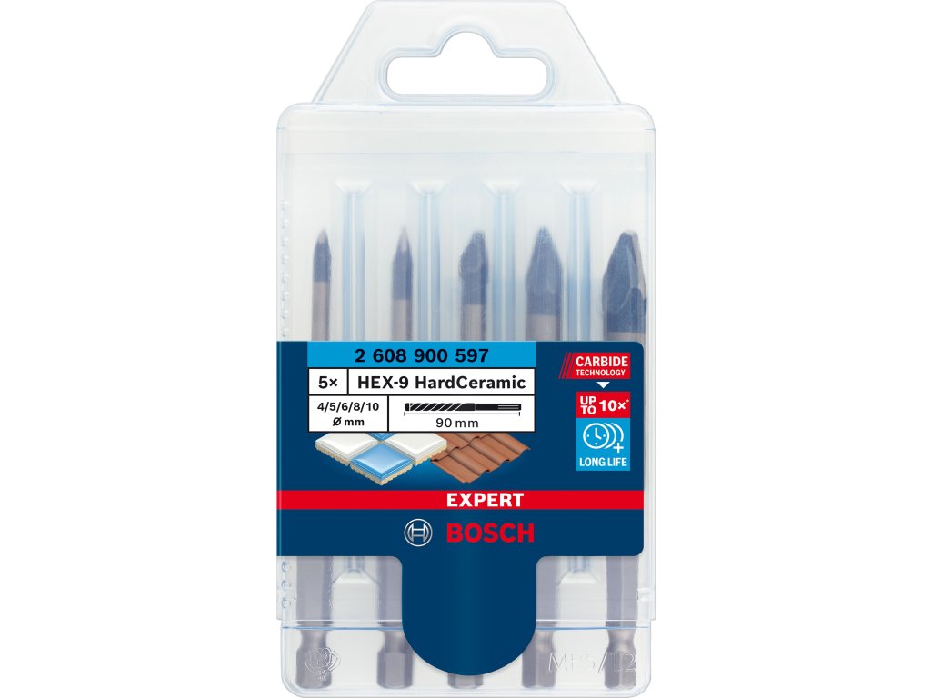 5 dílná sada vrtáků EXPERT HEX-9 Hard Ceramic, 4 × 90; 5 × 90; 6 × 90; 8 × 90; 10 × 90 mm